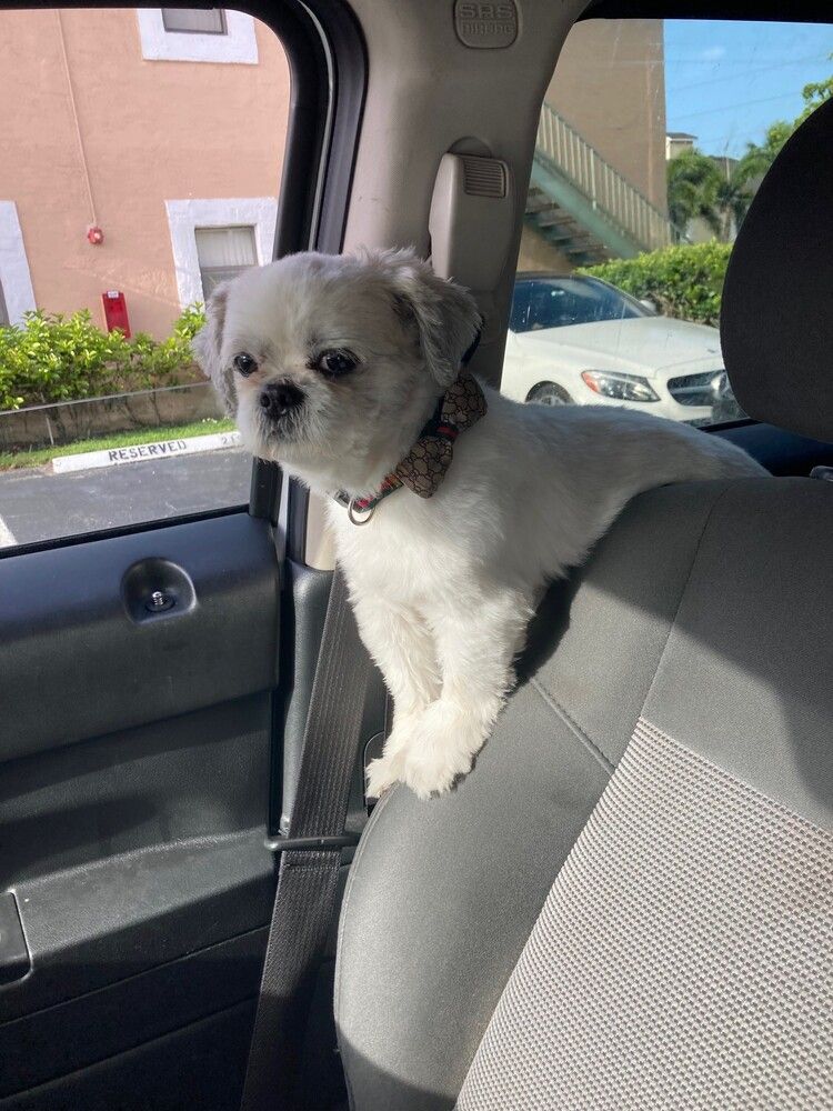 Caught mid-ride and clearly embracing the role of co-pilot, Gucci proves to mom Charesse that every errand is better with a furry friend along for the journey. With that stylish bow and calm confidence, it’s safe to say Gucci isn’t just along for the ride—he’s leading it.